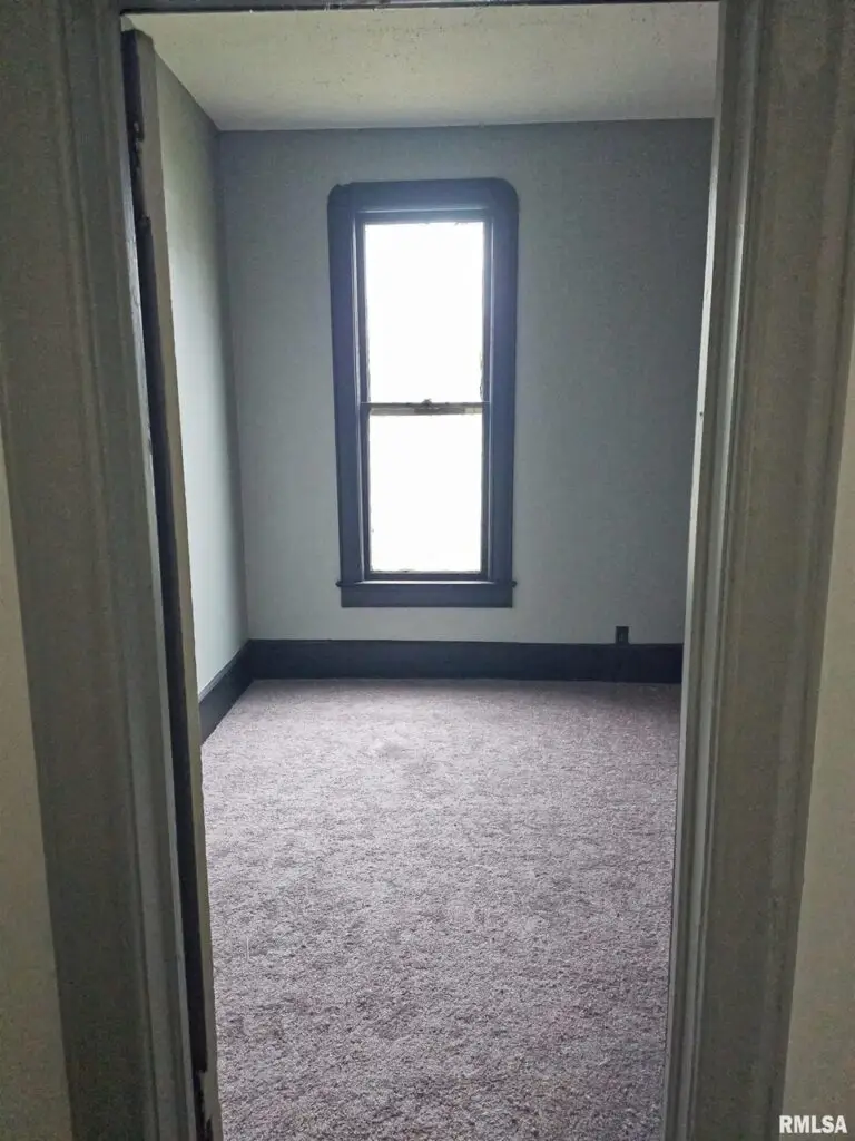 This house needs a caretaker to bring it back to its original glory. Don’t get me wrong, it would be a lot of work but imagine what this house could be! There is some beautiful stained glass in the sitting room. The moulding throughout is nice and wide – a favorite feature of mine in old houses. It looks like the previous owners had just put vinyl over most of the flooring so the original hardwoods are probably underneath. This house is a project but I can see what this house could be.